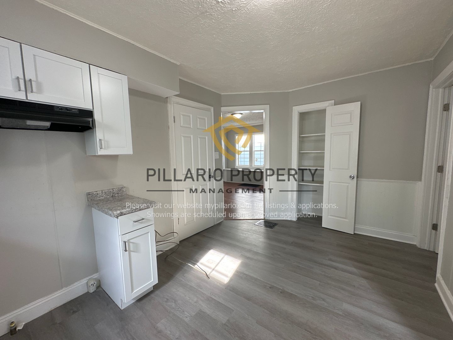 The kitchen is a cook’s delight with brand-new white cabinetry, neutral countertops, a double-sided sink with updated fixtures, and a pantry for extra storage. A refrigerator and stove will be provided, so you can move right in and start cooking!