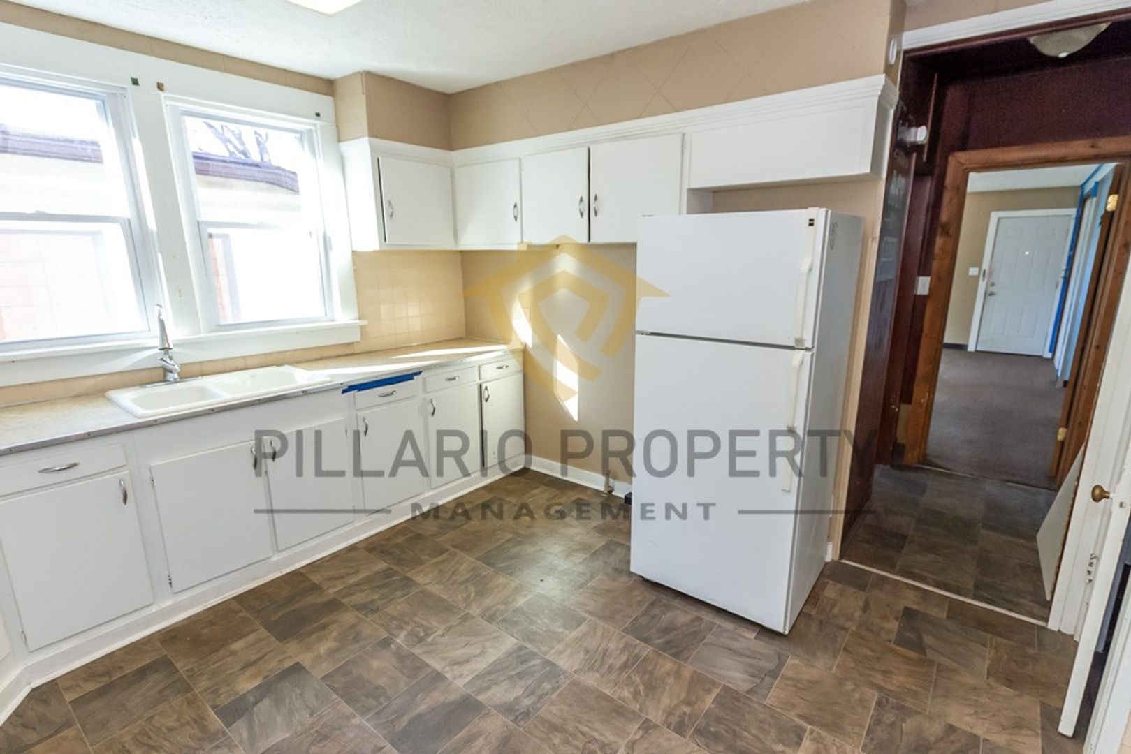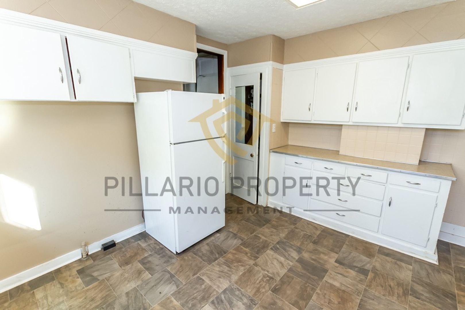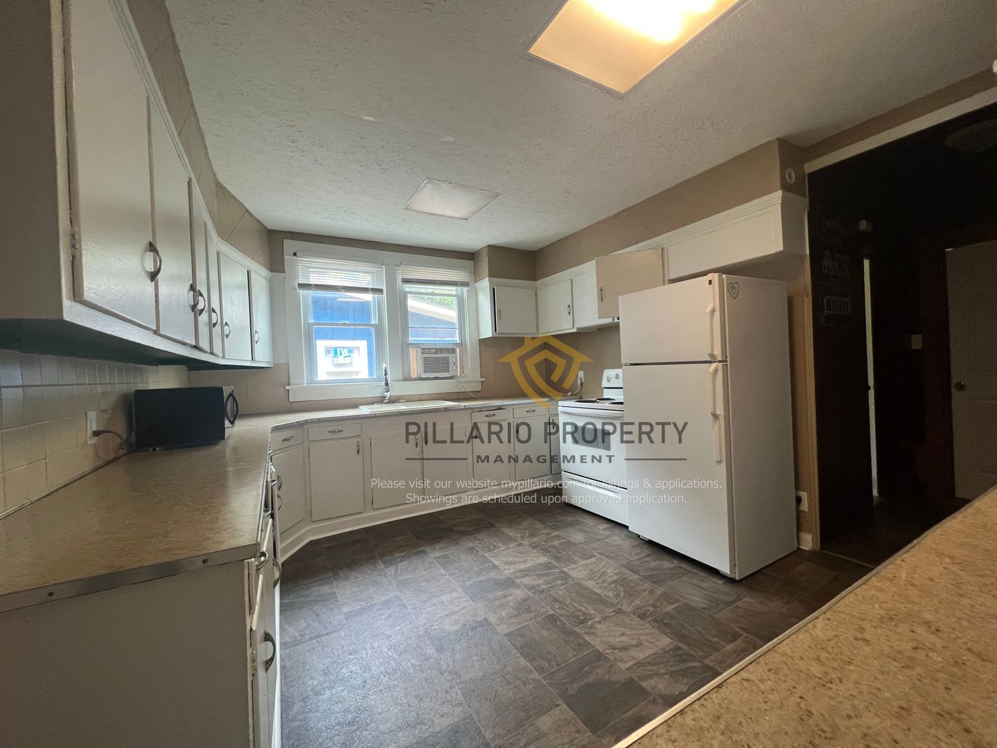 Step inside to discover a thoughtfully updated bathroom that seamlessly blends modern aesthetics with timeless comfort. The expansive kitchen stands as the highlight, with bright white cabinets that exude a sense of freshness. Countertop space is generously allocated, catering to your culinary endeavors, whether it's whipping up family dinners or preparing grand feasts. For your convenience, a refrigerator and stove are thoughtfully provided.