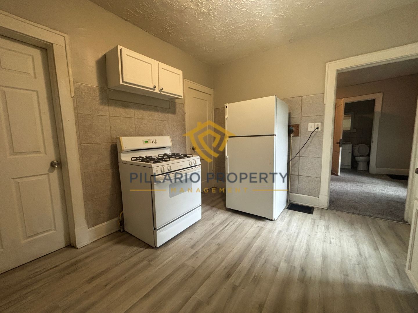 The kitchen features a new countertop, updated sink, and ceramic tile wall surround, plus the refrigerator and stove are provided for your convenience. You’ll also enjoy the added bonus of washer/dryer hookups right at home.